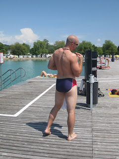 While I have been over here, I have experienced many different things. No free refills at McDonalds–that’s fine, I could stand to lose a few. I learned what it means to really drink beer, also fine. I have been fortunate to have great teammates who are willing to show an “ignorant” American around their beautiful country. That being said, there was one thing that had been evading me. That’s right, the “banana hammock.” A staple of European swimwear, “Der Bader-Hosen”, a glorified tube sock gleaming in the summer sun. So when I went into the grocery store and saw that there was an incredibly reasonably priced (3 Euro) bader hosen in the clearance aisle, I jumped all over it. Of course, my girlfriend, sister, and teammates were all there to document the entire process, which then raised another point: should I ever have to get a “real job” will these pictures make me completely unemployable? The answer? A resounding “Yes!”