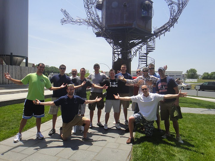 For those of you not keeping score at home (or reading super SEO’d blog titles…above) FWG took a group trip to The Dogfish Head Brewery in wonderful Milton, Delaware. And this wasn’t just any tour, this was part of a three day bachelor party-beach-extravaganza with former players representing the Big East, MAC, and NFL…and Pennsylvania AAA High School Football. This many meatheads in a confined space has bro-tastic disaster written all over it, add in the fact that three years removed from college/pro football and they’ve all managed to put a little coin in their respective cargo shorts and I’m lucky we (I) made it out alive. Me and my co-pilot Mike left Thursday night after work and managed to get lost only once (fuck you George Washington Bridge Upper Level Barricade) before arriving at 3:07am Friday morning.